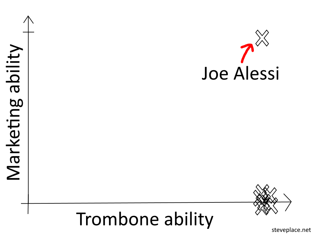 Another criticism is “He’s not that good at self-promotion. He wouldn’t last a day in a real marketing job.” Yes, but that’s not the game he needs to win. All he needs to do is be a bit better at marketing than the other top-tier trombone players to stand out.